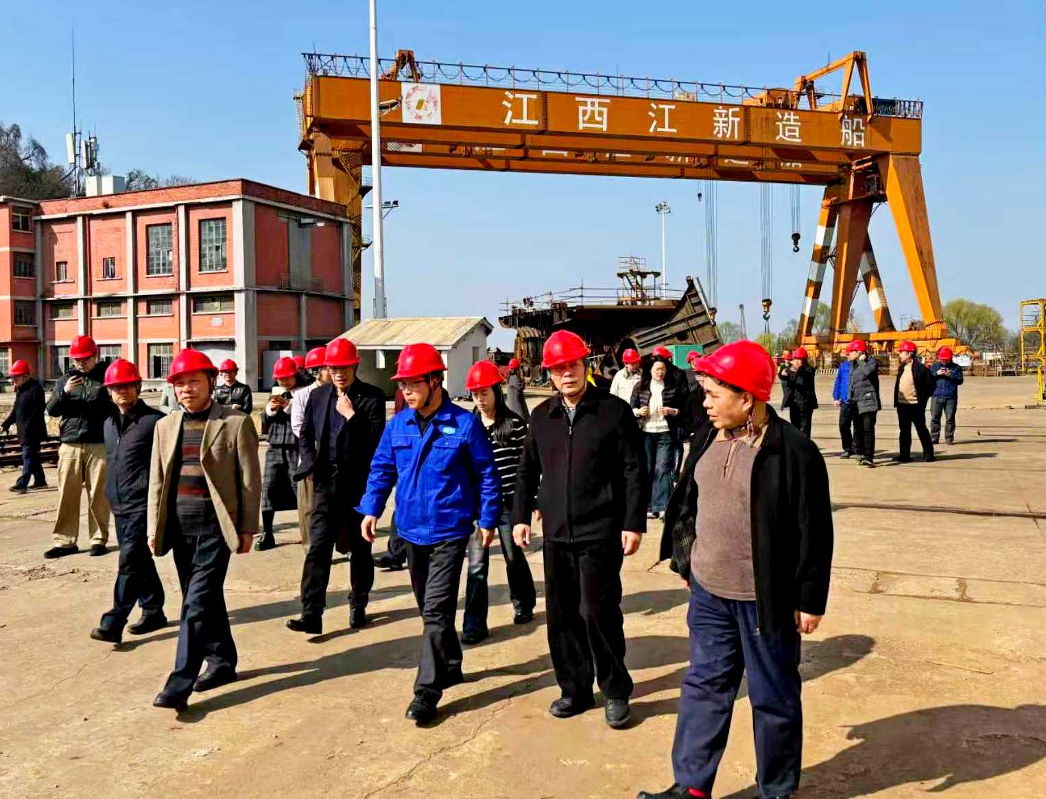会议期间,与会代表还参观了省国防科工文联副会长单位江西江新造船有限公司展厅及船舶生产区。